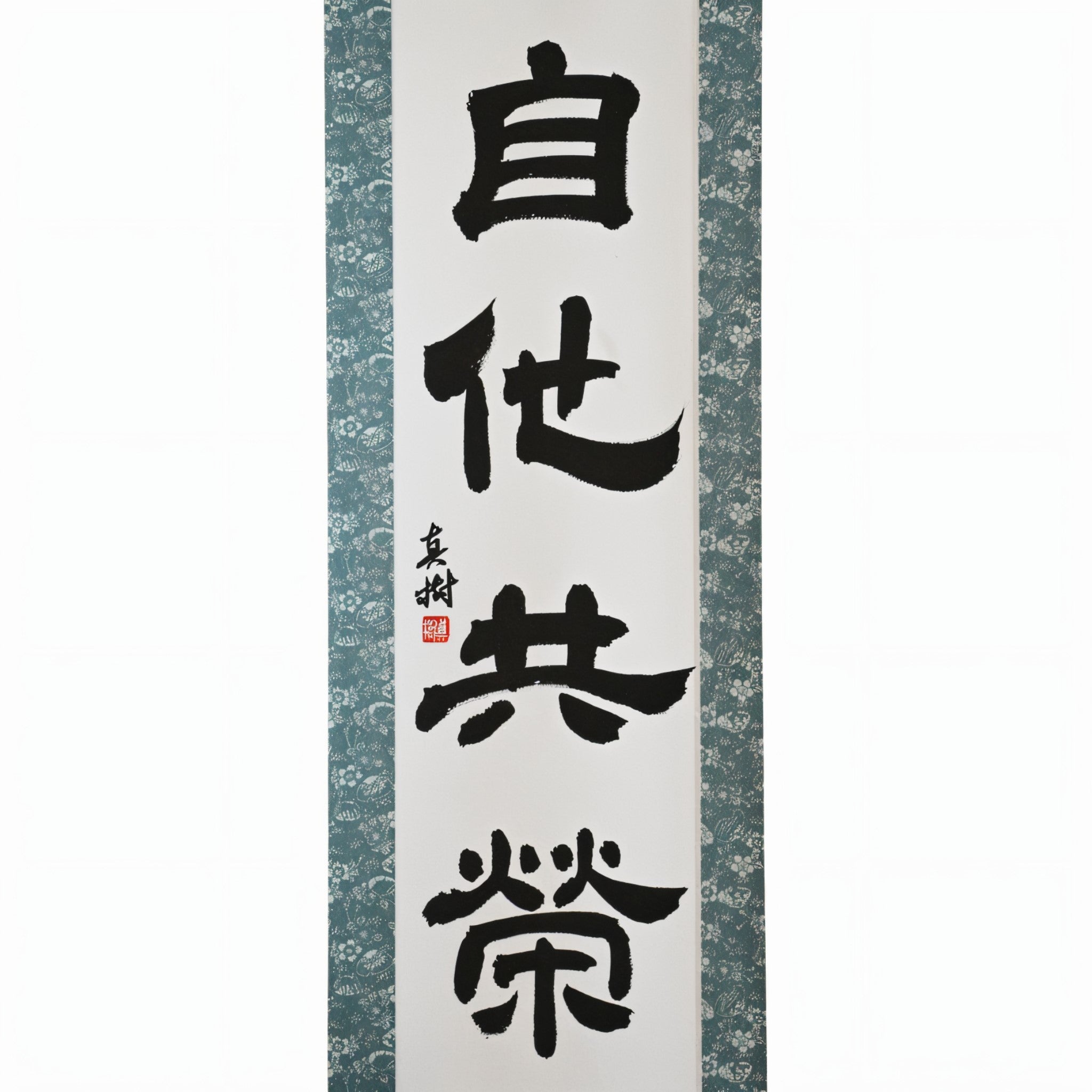 This Japanese calligraphy scroll features the timeless phrase 自他共栄 (Jita-Kyōei) — translated as "Mutual Welfare and Benefit". It is one of the two core principles of Judo, alongside 精力善用 (Seiryoku-Zenyō, "Maximum Efficient Use of Energy"), both established by Judo’s founder, Jigoro Kano (嘉納治五郎).